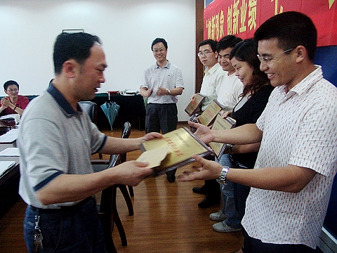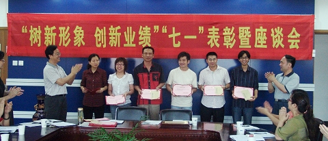 会上,丁根林副校长首先宣读了关于表彰2007年“和谐在校园”支部建设创新奖评比活动获奖单位、2006-2007年度优秀共产党员和优秀党务工作者的决定。学校领导为获得校级优秀共产党员、优秀党务工作者的代表、获得支部建设创新奖的基层党组织颁发了荣誉证书、奖金及铜牌。