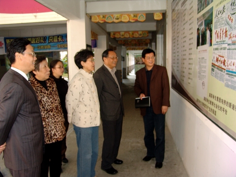 徐志纯高度肯定了我校所取得的成绩,并欣然为我校题词:“教育创新、再铸辉煌”。