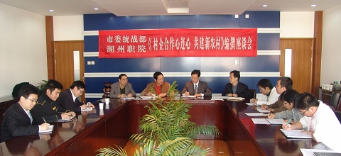 11月10日,我校与市委统战部就《村企心连心 共建新农村》编撰工作进行了座谈。市委统战部副部长任玉林、校党委书记杨柳、湖州知名学者张建智以及参与编撰的人员出席了座谈会。
