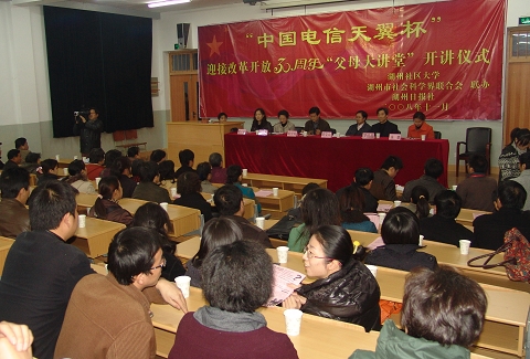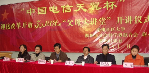 校领导胡世明、沈琪芳、市委宣传部副部长、市社联主席沈宝山出席了开讲仪式。