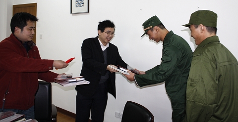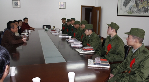 12月11日下午,我校召开了2008年冬季应征入伍大学生欢送会。会上,各分院学工办辅导员为8名光荣入伍的在校大学生颁发了入伍通知书、纪念品,戴上了光荣花。人武部楼锡银部长对各应征青年能够听从祖国号召唤,积极献身国防表示赞许,并勉励大家在踏入军营之后,要提高标准严格要求自己,充分发挥出大学生的自身优势,令行禁止,在新的岗位上再创新功,为家人和母校争光。
