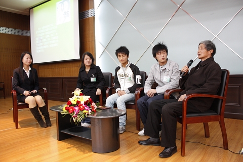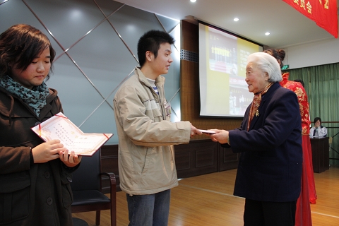 表彰会上人文与旅游分院公益积 “斤”志愿者团队,工商管理分院志愿者村、飞英文学社等6个公益服务团队和方华君、毕慧等4名同学获得“‘感动校园’十佳公益服务志愿者”称号。主持人对本次获得表彰的志愿者代表团和个人进行了现场访谈。助残志愿者门面对服务对象冷漠的态度不气馁不泄气,想尽方法只为打开他们的心扉;护老志愿者们以真诚感化了一位位老年人的心,一位70多岁的老奶奶花了3天时间用笔写下了一封长达3400多字的感谢信,感谢志愿者们的无私付出,志愿者们的点点滴滴感动了在座的每一位观众。