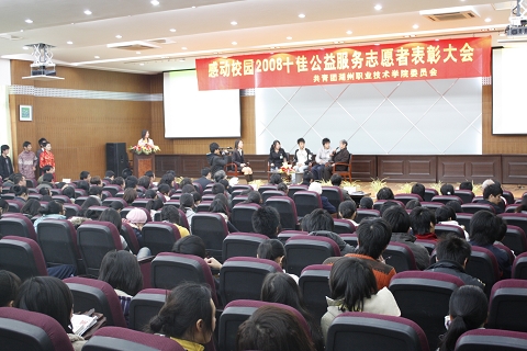 12月9日,为了进一步总结工作,交流服务经验,我校首届“感动校园十佳公益服务志愿者表彰大会”在我校9号楼1号报告厅隆重举行。校党委副书记陈松源、校党委委员宣传部部长吴海燕、团市委副书记饶如锋、相关部门分院领导和社区干部、居民代表400余人出席了本次表彰大会。