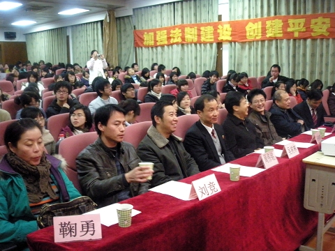 湖州吴兴区人民法院民一庭吴树林庭长、郭文利法官、校党委委员宣传部长吴海燕、校学工部部长周伟铭、校保卫处处长楼锡银、校团委书记刘竞、分院党总支书记谢云琪、以及来自分院的老师、同学近300人参加了本次以“法制在我心,安全伴我行”为主题的法制安全教育活动。吴兴区人民法院民一庭吴树林庭长为活动致辞。