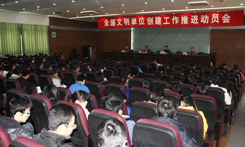 校党委书记杨柳在会上作了题为《明确目标、强化责任、进一步提高工作质量和创建水平》的动员报告。他指出,今年学校被中央文明委授予“全国精神文明创建工作先进单位”荣誉称号,向创建“全国文明单位”的目标迈出了坚实的一步,2010年学校将迎来“全国文明单位”的评比。