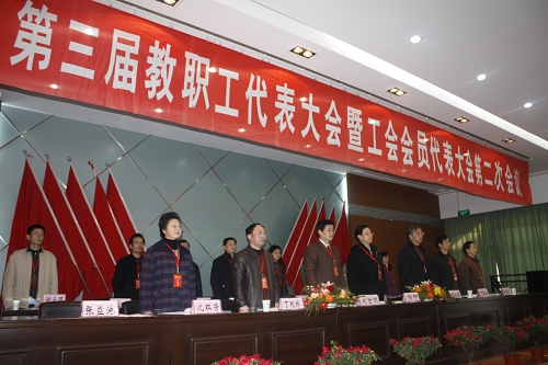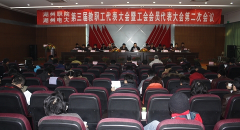 1月2日上午9点,湖州职业技术学院•湖州广播电视大学三届二次“教代会•工代会”在行政楼1号报告厅正式开幕。113位正式代表,19位列席代表,12位特邀代表出席了开幕式,校党政领导杨柳、胡世明、陈松源、丁根林、丁继安、沈琪芳、吴海燕在主席台就座,校党委书记杨柳主持。