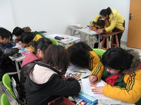 一曲由手机播放出的音乐,让洋洋(化名)紧握义工们的手,安静地轻咪起了眼睛。工疗站的沈站长说:“平时孩子容易躁动不安,频繁地脱掉自己的鞋,还乱扔东西,但他喜欢和这些大学生义工们在一起玩耍。”得知这些孩子需要多做体育运动练习行走能力,大学生们陪孩子们来到运动室,进行了一些体育锻炼。随后,志愿者们拿出自编的教材,手把手给这些智障儿童上了一堂难忘的美术课。