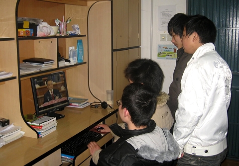 3月5日晚,机电工程分院团委则组织学生干部通过网络观看第十一届全国人民代表大会第二次会议开幕式和国务院总理温家宝作政府工作报告,认真学习两会精神。寝室里,几个同学一起围着电脑,专心听着温家宝总理的演讲。温家宝总理对08年我国在经济、社会和环境、文化生活等多个方面的建设做出了肯定,同时也对将来的改革提出了新的目标,给祖国的未来规划了美丽的蓝图。机电工程分院学生会副秘书长金溢柠同学说,作为学生干部,我们应该认真学习两会精神,把两会精神带到日常工作和学习中去,并且及时传达给其他同学。在接下来的八天里,我们将会继续关注两会情况及内容,及时为其他同学们做好两会内容和精神的传达。