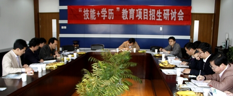 会上,培训中心首先总结了08年“技能+学历”教育项目招生情况,并通报了09年的招生方案和指标。各分院结合去年的经验基础,针对招生过程和学生入校后的管理进行了热烈的讨论。