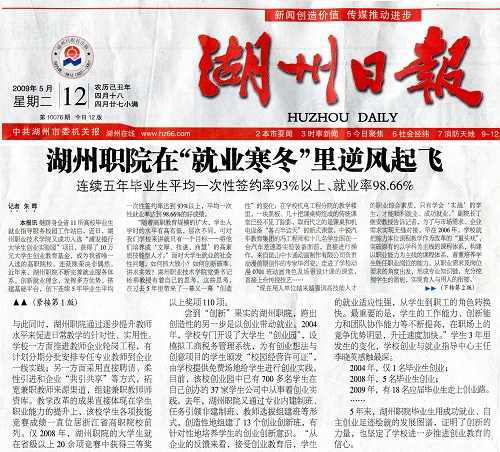 5月12日出版的湖州日报在头版位置报道我校大学生就业工作