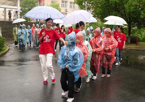 湖州市良友学校是一所农民工子弟学校,今年4月20日和人文与旅游分院签订了公益服务合作协议,并将每年的5月21日定为双方的“友谊日”。针对该校素质教育师资力量薄弱的现状,分院团委认真调研、细致安排,将和建筑与艺术分院团委、国际贸易与外国语分院学生党支部一起携手在该校开设舞蹈、音乐、美术、书法、英语等各种兴趣班。4月底,在一次公益服务活动中,良友学校校长反映学生们的课余生活单一,活动较少,出去的机会不多,希望可以到我校校园看一看,让孩子们也感受下大学的氛围。校庆刚过,借助这样的一个时机,美丽的校园迎来了一群这样特殊的“小客人”。虽然天公不作美,淅淅沥沥的雨多少有点影响活动,但是打在孩子们脸上的雨水激起的却是孩子们更加热切的笑容;而对于我们的志愿者,雨水更加坚定了他们认真做好各项工作的决心。辛勤的工作换来了孩子们开心的笑脸,我们也乐在其中。