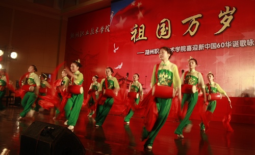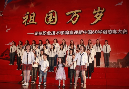 6月10日晚,我校艺体馆内“红歌嘹亮”,掌声如潮。“祖国万岁”喜迎60华诞歌咏活动在这里隆重举行。