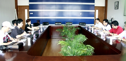在交流座谈中,胡校长介绍了我校近年来发展建设的整体情况,机电分院院长李天真介绍了我校国家级职业教育实训基地——电工电子与自动化技术实训中心建设理念和建设方案。