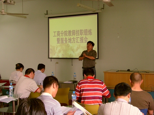 为了总结一学期来实施“教师企业轮岗工程”效果及推进分院服务地方工作,7月5日上午,工商管理分院召开了“教师下企业挂职锻炼暨服务地方汇报会”,丁根林副校长及分院全体教师参加了此次汇报会。