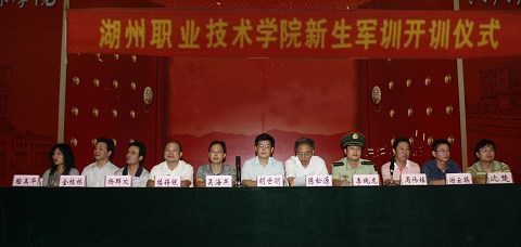 9月21日上午,2009级新生军训动员大会在校艺体馆隆重召开。校领导胡世明、陈松源、吴海燕、武警驻湖某部领导和各分院书记、相关部门负责人、全体教官、班主任及全体2009级新生出席了大会。校党委副书记陈松源作军训动员,校长胡世明宣布2009级新生军训正式开始。