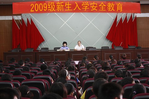 9月20日下午,我校400多名2009级新生代表在一号报告厅接受了大学生涯的第一堂安全教育课。