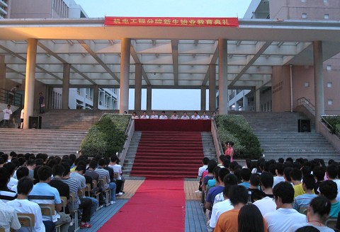 新生报到伊始,机电工程分院认真组织2009级新生做好始业教育工作。9月20日晚,分院在机电广场隆重举行始业教育典礼。分院领导李天真、金栋林、左希庆、特邀嘉宾久立集团股份有限公司副总裁、党委副书记张志方、各教研室主任以及全体新生班主任、新生参加大会。