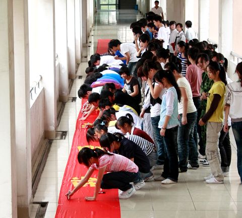 蓝天白云抒写着我们的祝福,山川田野荡漾着我们的深情。9月23日,建筑与艺术分院在5号教学楼长廊举行了“千名学子60米长卷祝福祖国”主题活动,1000多名大学生在长卷上进行现场书画,以优美的话语和七彩的图案为伟大祖国的60华诞祝福。