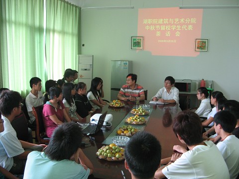 9月28日下午,建艺分院举行中秋茶话会提前与留校学生共度中秋佳节。分院院长方东付,党总支书记沈楚各年级留校学生代表欢聚一堂、谈心叙情,并为与会的少数民族学生和外省留校贫困学生准备了一份特殊礼物--- 一张电话卡,希望这些留校过节的同学,用这张电话卡给家中辛劳的父母打个电话,向他们送上节日最诚挚祝福,聊聊自己在学校的学习、生活情况。