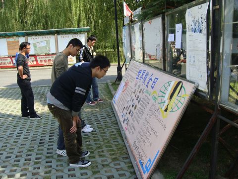 今年的10月16日是第29个“世界粮食日”,今年世界粮食日的主题是“应对危机,实现粮食安全”。宣传活动现场,参加活动的同学纷纷表示,“在平时用餐期间,做到‘量力而为’!”、“当我们在电视上看到一双双被饥饿折磨的痛苦的眼睛,我们怎能无动于衷?在此我们呼吁,我们大学生要‘从我做起,从身边小事做起’,牢记‘谁知盘中餐,粒粒皆辛苦’的古训,珍惜每一粒米饭!”、“‘平时一滴水,难时太平洋;平时一粒米,济世百千强’,作为大学生,我们更应该有珍惜粮食的意识,从小事做起,做到不浪费粮食。”……