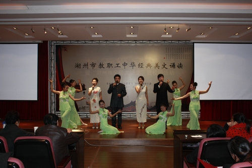 为庆祝新中国成立六十周年,弘扬中华民族优秀文化,市教育工会举办了全市教职工中华经典美文诵读比赛。我校工会积极组织,由甄晶、崔春、曲再鸣、陆中恺组队参加比赛,经过激烈的角逐,我校代表队荣获一等奖。