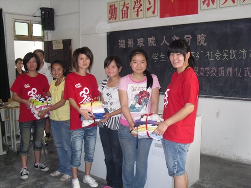 公益积“斤”志愿者团队只是学校“公益服务进千家,社会责任育青年”志愿者群体中一个小小缩影。2007年12月,学校以“学做人,学做事;送爱心,送技能;促成长,促和谐”为宗旨,以“引导青年学生健康成长,服务地方经济发展,促进和谐社会构建”为目的,启动了主题为“公益服务进千家,社会责任育青年”的大学生服务地方社会发展的志愿者活动,在近2年左右的时间里先后提供保洁、助残、创业指导等志愿服务18000余人次,涌现出了公益积“斤”、“帮帮热线”、社区“淘宝大学”、免费家装设计进社区、阳光服务站——社区居民进校免费学电脑、“两教一展”、湖城景区党员义务导游等一批事迹感人的志愿者团队。