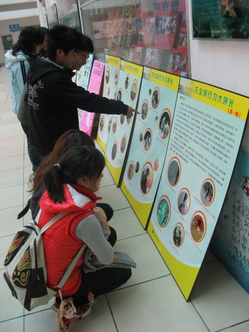 按照学习《文明读本》的基本要求,同时配合正在全面开展的全国文明单位的创建工作,“校园不文明行为展”展出了一批同学们创作的经过技术处理的摄影作品,以“曝光”的形式揭露了不文明现象。教室里乱扔垃圾、乱涂乱画乱刻、校园里打牌抽烟等不文明行为都一一进入了画面。