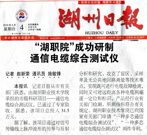 【湖州日报】“湖职院”成功研制通信电缆综合测试仪