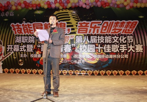 校党委副书记陈松源宣布了第六届技能文化节开幕。校团委副书记刘竞致开幕词,他指出,开办技能文化节的目的就是想通过校园文化活动这一载体,进一步活跃我们的校园文化氛围,为广大同学提供一个锻炼能力、展示个性魅力的舞台,借此来提高广大学生的综合素质,全面促进校园的精神文明建设。学生会主席邱立斌作为学生代表发言。