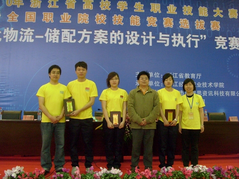 在2010年浙江省高等学校学生职业技能大赛暨全国职业院校技能大赛选拔赛物流项目“现代物流——储配方案的设计与执行”竞赛中,我校物流专业学生代表队在众多竞争对手中脱颖而出,夺得第二名的好成绩。同时还获得了代表浙江省高校出战6月份全国职业院校技能大赛的资格。据悉,全省仅两所高职院校获得该项资格。物流专业学生代表队由工商管理分院院长曾益坤带队,周宁武和徐寿芳老师指导,池春晓、来红莉、王怿圣等三位同学组成。