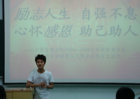 “有了目标后便能不断向前。”“学生工作是锻炼能力的重要途径,是更早一步的实习。”“微笑着看自己走过的路,并微笑的走向远方。”……5月27日晚,工商管理分院“成长的故事”系列之“学长有话说”交流会在天韵歌厅举行。分院07级的16位优秀毕业生以座谈的方式与学弟学妹们分享了大学的学生干部经历、考证求职的心路历程。活动中,台上台下的气氛轻松热烈,学弟学妹们也是获益良多。