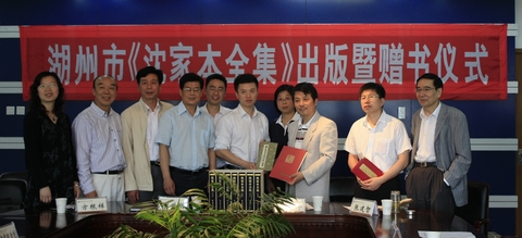湖州市人民政府与中国政法大学合作协议项目《沈家本全集》已由中国政法大学出版社正式出版发行。6月9日上午,沈家本全集工作委员会、湖州市法学会、湖州职业技术学院联合举办《沈家本全集》出版暨赠书仪式在我校隆重举行,相关领导和湖州市法学界代表出席了仪式。沈家本全集工作委员会委员、市检察院副检察长高勇年介绍了编撰情况。湖州市法学会、市图书馆、市博物馆、市档案馆、市委党校、市中级人民法院、湖州师院等单位接受赠书。