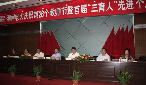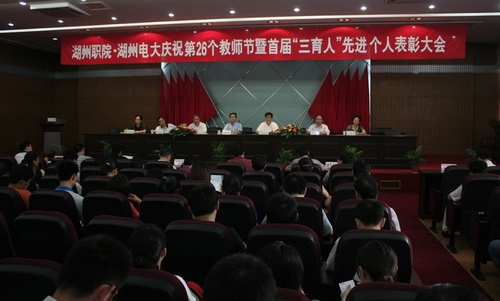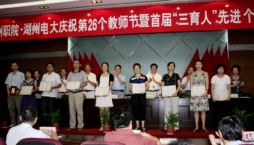 9月9日,学校在一号报告厅隆重举行庆祝第26个教师节暨首届“三育人”工作先进个人表彰大会,回顾和总结今年以来学校的各项工作,表彰首届“三育人”工作先进个人。校领导杨柳、胡世明、陈松源、丁根林、丁继安、沈琪芳、吴海燕和全校教职员工参加了会议。会议由校长胡世明主持。