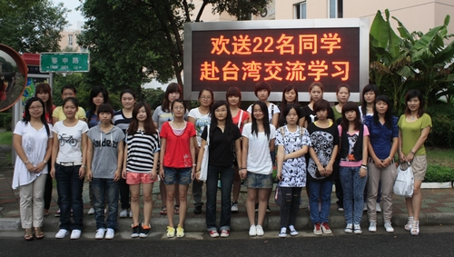 今年6月,党委书记杨柳随省市代表团在台湾考察时,与岭东科技大学签订了合作协议,两校正式结为姊妹学校。6月17日,岭东科技大学校长陈振贵一行专程来我校考察,应陈振贵校长的邀请,我校电子商务、旅游管理、动漫设计与制作、商务英语等7个专业的22名女生将赴岭东科技大学进行为期一个学期的学习,期间,她们将在台湾选修18-20学分的课程。据悉,这也是湖州地区首先启动的高校学生赴台交流项目,得到了湖州台商协会会长、湖州万德电子工业有限公司董事长庄文甫先生的大力支持。