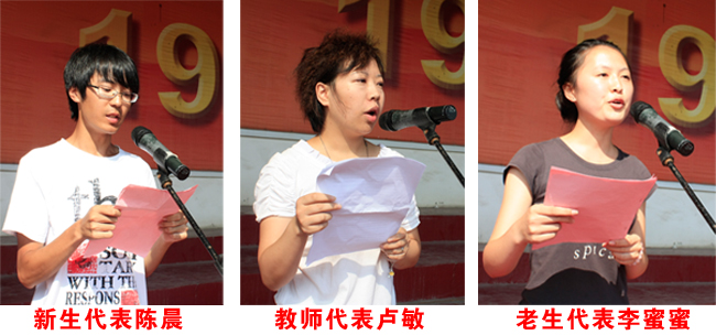 教师代表国际贸易与外国语分院卢敏老师、老生代表人文与旅游分院文秘0901班李蜜蜜同学、新生代表机电工程分院自动化1002班陈晨同学在会上做了发言。