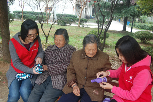 建筑与艺术分院的志愿者们就借着这洋节,刮起了中国风,举办了以“爱之名”为主题的感恩节系列活动。建技0801班的周蕾同学介绍说,活动分为三个部分:一是鸿雁千里传音讯、百封家书寄真情,主要是让同学们尤其是大一的同学通过书信的方式向父母表达感谢,感悟大学生活;二是“阳光行”——与阳光之家智障儿童康复中心的学员做游戏,在行动中接受感恩教育;三是“彩虹行”——前往湖东社区看望孤寡老人,在天气转凉之际给她们送上温暖的手套和围巾。这三场活动从不同的方面表达大学生们对于社会对他人的感恩之心,宣扬中华民族尊老爱幼的传统美德。