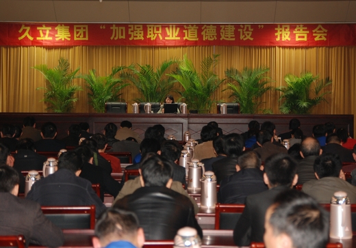 讲座以《敬业与乐业》为题,围绕做人与做事——职业生活的道德、敬业——对待职业劳动的执事态度、乐业——从职业活动中寻找幸福感三个问题展开。整场讲座充分利用多媒体,深入浅出,生动直观,通过对典型事例的分析,结合久立集团的企业文化、经营理念等,生动地阐述了培育职业道德的重要意义,帮助集团员工树立正确的职业观和人生观,引导员工乐观向上,对工作、生活和未来始终保持奋斗的热情和激情,将自己的行为与企业文化重要组成部分的职业道德与职业素养有机结合起来。此次讲座受到了久立集团领导及企业员工的好评,在企业和员工中营造了爱岗敬业、乐业奉献的良好职业道德氛围。