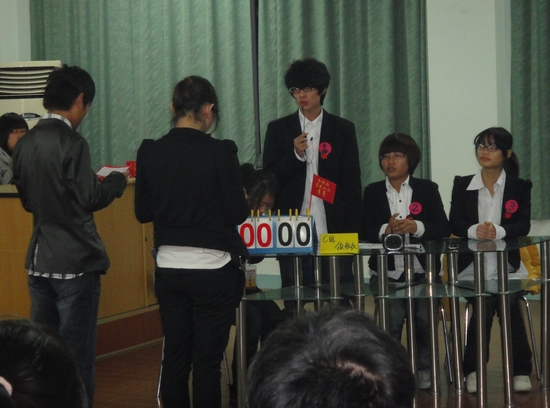 “下面进入必答题环节,请A组芸梦之队回答,请问党的三大优良作风是什么?”“请看大屏幕,这张图片反映的是党的历史上什么重大事件?”一道道精挑细选的党建知识题目,一次次扣人心弦的碰撞交锋,11月26日,工商管理分院学生党员之家第三届“先锋杯”党建知识竞赛总决赛在6201顺利举行。党建知识竞赛是分院党建活动的品牌项目之一,更是分院“创先争优”活动实施推进的重要内容。自今年6月“创先争优”活动实施方案落实以来,分院开展多项措施积极推进创优争优活动,亮化党员身份,提升党员素质,拓宽党建平台,探索党建品牌。