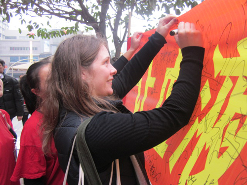 志愿者徐欢在接受媒体采访时表示,表示作为大学生要为社会做出自己应该做的力量,我们组织这次活动不仅仅是要宣传义务献血和防艾知识,更是要号召更多的人加入到珍爱生命,关爱他人的队伍中来。