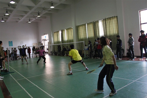 比赛场面紧张热闹,参赛运动员手握羽毛球拍,老师们找回了青春,同学们充满了朝气。比赛期间不管是新手还是老将,大家都踊跃上场一试身手。各个参赛选手发挥最佳水平,一决高低,比赛进行得非常激烈,球打得快、狠、准,白色的羽毛球在空中飞舞,选手们打得酣畅淋漓,观众看得是惊心动魄,场下的掌声、喝彩声此起彼伏。