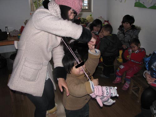 值此元旦来临之际,志愿者们给康复中心的孩子们送去美味的水果和精美的小礼物,一起为孩子们许下新年心愿,祝愿他们能早日康复。志愿者们在中心老师的指导下,与孩子们一起做游戏、跳舞,用手势与他们交流,对他们的视听反应进行有益刺激,给年纪幼小的孩子们一个温暖的拥抱,志愿者的到来使孩子们活泼起来,忘记了疾病的痛苦,笑容又回到他们的脸上。