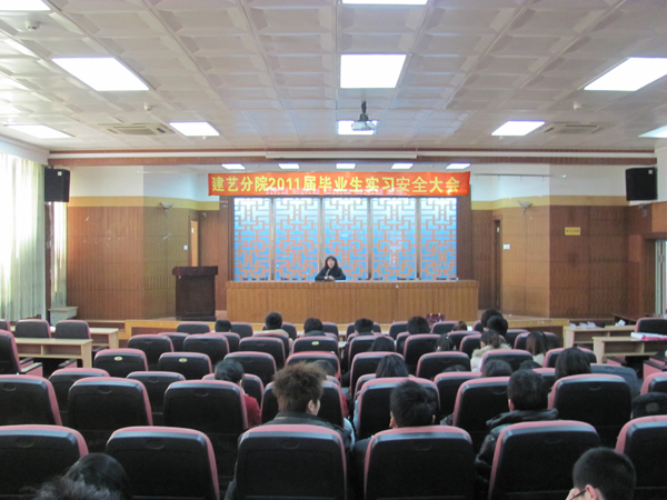 3月4日下午,建艺分院在一号楼三号报告厅召开了08级建筑专业学生实习安全教育大会,对同学们实习生活中所涉及的人身安全、财产安全、交通安全提出了要求。建筑系教师、毕业班班主任、辅导员及全体实习学生参加了会议。