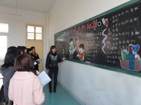 两周来,分院各班级积极准备、精心刊制。3月16日下午,由分院学工办老师和各班学生干部组成评审小组,对各班黑板报版面、选材等方面的表现形式及现场讲解进行综合打分。评审小组发现各班级的黑板报主题鲜明,形式新颖,整体版面协调、舒适,内容丰富,体现了浓郁的文明意识和氛围。