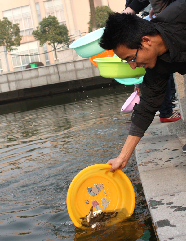 4月1日,建艺分院学生文明督导队与资产经营公司在碧玉湖畔联合向全校师生联合倡议营造良好的校园文明环境。仪式上,校学生处长周伟铭、资产经营公司办公室主任褚锡星和建艺分院学生文明督导队的队员一起向校园河道放养了4000多尾“食藻鱼”,用于平衡校园河道生态环境。
