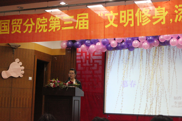 谱写青春的旋律,奏响文明的强音。4月18日晚,国际贸易与外国语分院第三届“文明修身 添彩校园”演讲大赛在一号楼三号报告厅隆重举行。