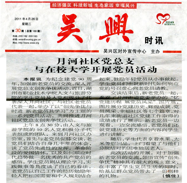【吴兴时讯】月河社区党总支与在校大学生开展党员活动