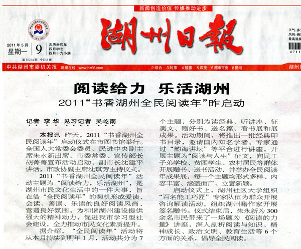 【湖州日报】2011“书香湖州全民阅读年”启动