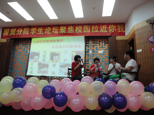 访谈会在轻松幽默的气氛中拉开帷幕,受访的“校园小明星”用平实的言语述说着她们的大学生活,与观众分享自己生活的点点滴滴以及喜怒哀愁。嘉宾孙乐娴同学用自己的过去与现在进行对比,鼓励同学们不要胆小,相信自己,把握自己,人生的舞台是充满美好的。学生会副主席叶朱凤同学告诉同学们团队的力量,怎样让自己的团队更强大,让同学们知道大学友谊的弥足珍贵。