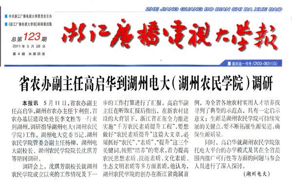 【浙江电大报】省农办副主任高启华到湖州电大调研