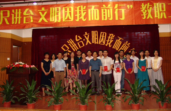 日前,学校组织开展了以“三尺讲台 文明与我前行”为主题的教师演讲比赛活动。工会主席吴海燕出席了比赛现场。叶美芬、周伟铭、陈雅、吴新化、宗培玉五位老师担任评委。此次比赛活动的目的是为进一步提高我校广大教师的思想政治素质、职业理想和职业道德水平,弘扬高尚师德,不断提高师德水平,促进学校教育科学发展、和谐发展。